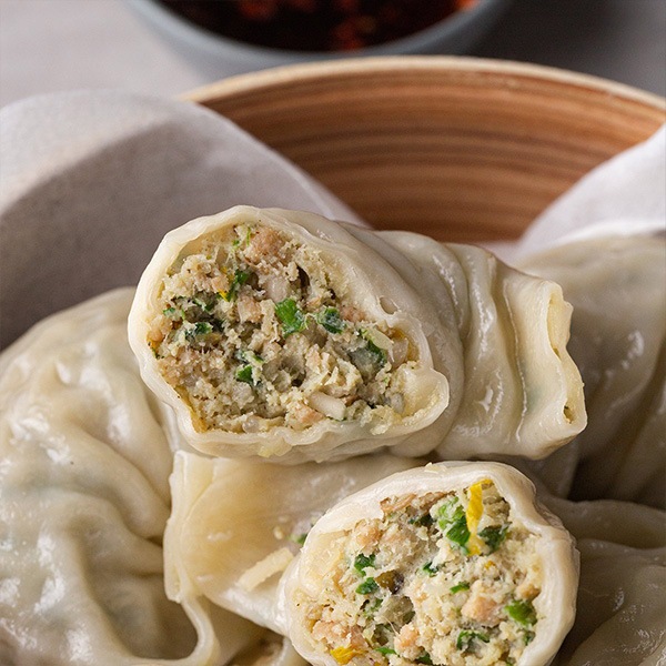 | 主原料 | 野菜(ニラ、もやし、玉ねぎ、えごま、にんにく)、豚肉、豚脂、白菜塩漬、豆腐、乾燥大根、植物油脂、はるさめ、香味調味パウダー、砂糖、香味シーズニングオイル、醤油、調味肉粉末、オイスターソース、ごま、しょうが粉末、こしょう、食塩、皮(小麦粉、タピオカでん粉、食塩、もち米粉、もち麦粉、じゃがいも粉末)、調味料(アミノ酸等)、香料、カラメル色素、pH調整剤、甘味料(キシロース、甘草、ステビア)、(原材料の一部に乳成分、卵、かに、牛肉を含む) |