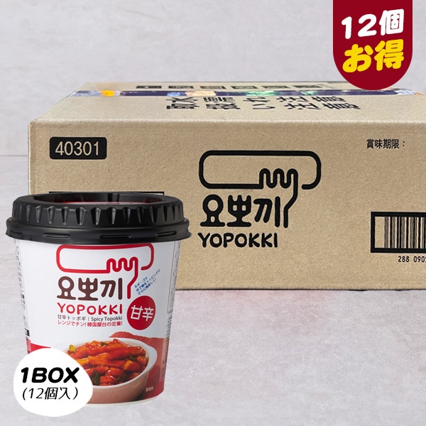 | 特徴 | トッポギの即席カップフード「YOPOKKI(ヨッポギ)」が入荷しました。 カップの中のトッポギソースに水を加えて混ぜ合わせ、電子レンジで温めれば完成! ランチや夜食、おやつやおつまみなど簡単手軽にトッポギが楽しめます♪ 手軽に本場韓国のタッカルビトッポキを楽しめます。 持ち歩きやすい便利さ! 小腹すいた時、おやつにも最適です。 |