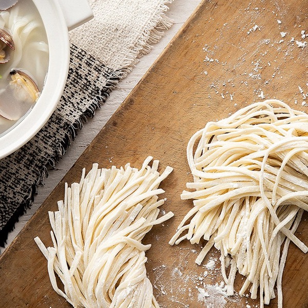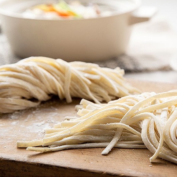 | 美味しい食べ方 | 1. 鍋に適当量のお湯を沸かします。 2. 鍋のお湯に麺を入れ、5~6分間茹でてください。茹で上がったら冷水に2~3回さらします。 3. スープを作ります。(この商品にスープは付属しておりません。別途お作り下さい。) 4. スープができ上がったら、用意していた麺を入れます。 5. 最後に器に入れます。しいたけ、にんじん、えび、のり、卵、ねぎなどを入れるとより美味しいカルグクスをお召し上がり頂けます。 |