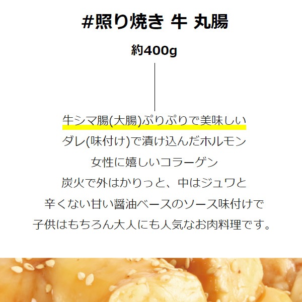 | 名称 | 照り焼き 牛丸腸 牛シマ腸(大腸) |