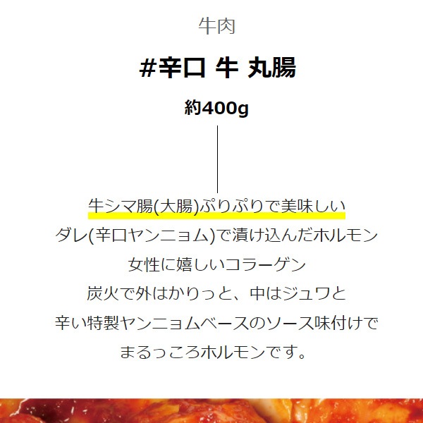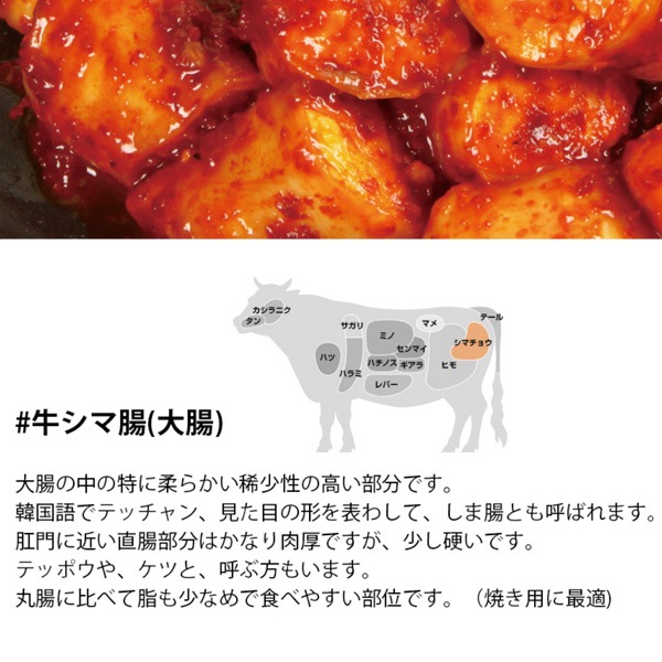 | 名称 | 辛口牛丸腸 牛シマ腸(大腸) |