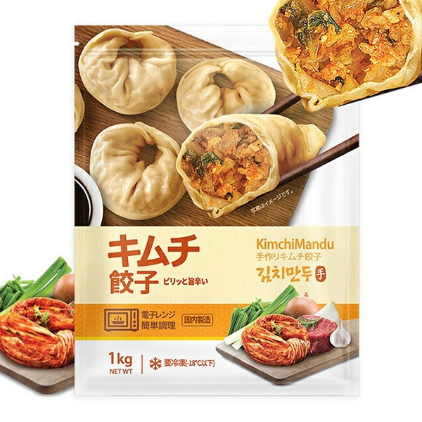 | 特徴 | 手作りキムチ餃子1kgパック。ピリッとした旨辛さがクセになる、まさに絶品の一品です。 見た目も可愛らしい丸型の餃子で、食卓を華やかに彩ります。 冷凍でお届けしますので、いつでも手軽に本格的な韓国の味を楽しむことができます。 |