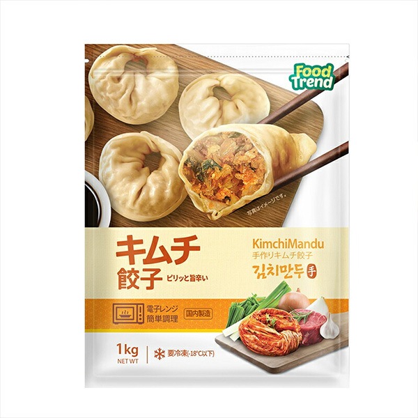 [FoodTrend] 名家 手作りキムチ餃子/ 1kg ピリッと旨辛いキムチ餃子 韓国でよく見る丸型の餃子 冷凍餃子 ぎょうざ (冷凍)