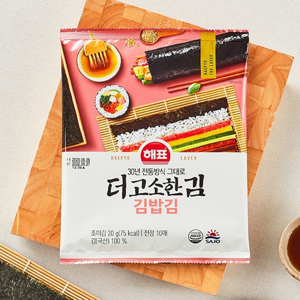 | 特徴 | 2回焼きのパリパリ食感!海苔巻き用のり 韓国の海苔巻き用に適している焼きのりです。 韓国産のり100%使用! 2回焼きでさらに香ばしいです。 |
