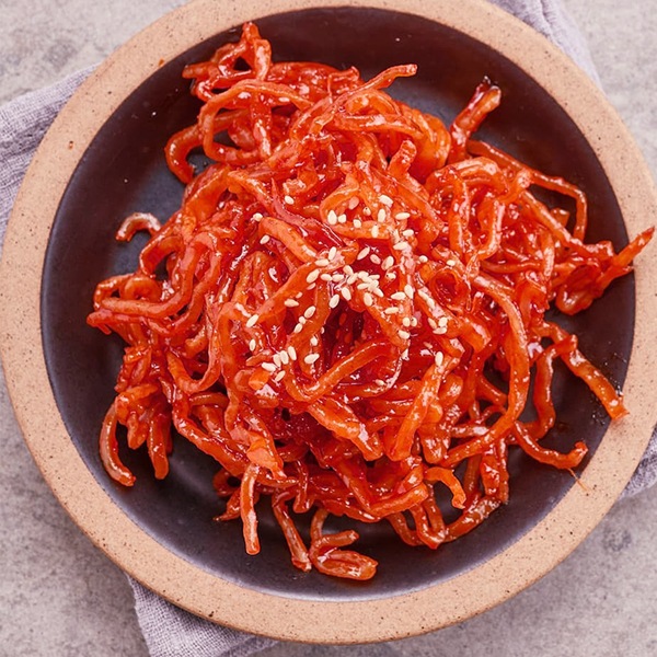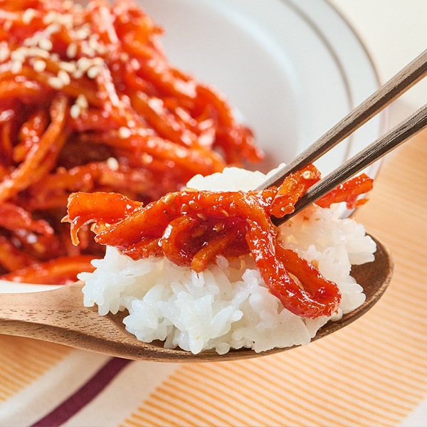 | 特徴 | 香ばしくて歯応えのあるさきいかに甘辛のゴチュジャンとにんにくの香りを加えます あまり辛くなく甘辛なので子供にも人気です。 コリコリと歯ごたえがとても魅力的で噛めば噛むほど海の香りが広がります。 |