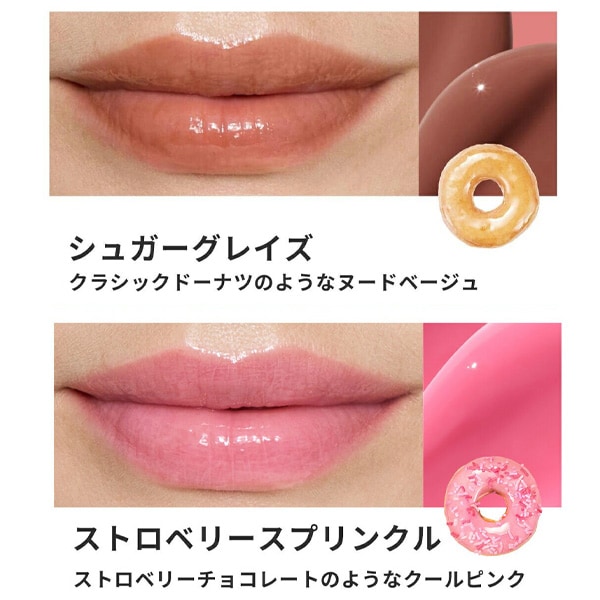| 特徴 | ドーナツリップ 95%美容成分配合の血色感リップセラム 濃密なうるおいで唇を整えながら、血色感とツヤを与えて華やかな印象に。 立体的な艶めきと血色感を与えるカラーリップセラム つややかでボリューム感*ある潤ったリップに演出 |