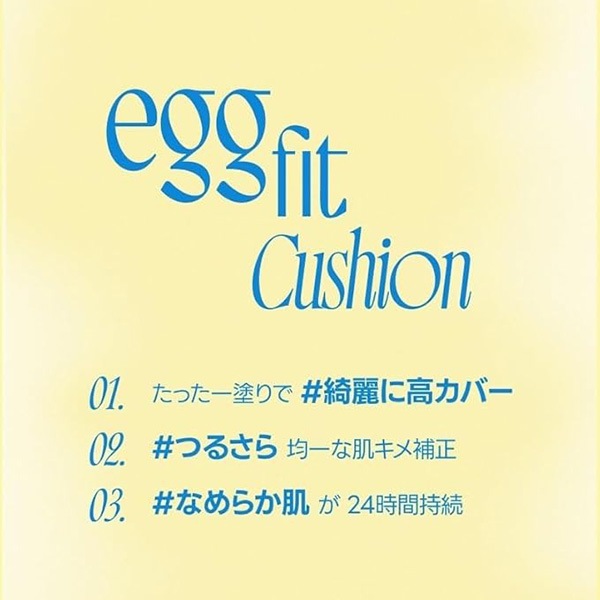 | 商品詳細 | 高いカバー力とセミマットな仕上がりで欠点のないなめらか肌が一日中続くむき卵カバークッション egg fit Cushion なめらかさと透明感が共存するfweeだからこそ表現できる #ガラス玉ツヤ 温泉水ケア成分配合のしっとりとしたスキンケアクッション 塗りたてでも浮くことなく肌にピタッと密着テクスチャー |