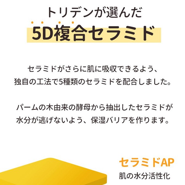 | 成分 | ポリイソブテン、ワセリン、リンゴ酸ジイソステアリル、ホホバ種子油、シア脂、セスキオレイン酸ソルビタン、マカデミア種子油、オリーブ果実油、バオバブ種子油、セラミドNP、セラミドNS、セラミドAS、セラミドEOP、セラミドAP、ステアリン酸、コレステロール、酢、ヒアルロン酸Na、パンテノール、トレハロース、水添レシチン、マイクロクリスタリンワックス、サルガッスムフシフォルムエキス、グリセリン、BG、水、トリ(カプリル酸/カプリン酸)グリセリル、1,2-ヘキサンジオール |