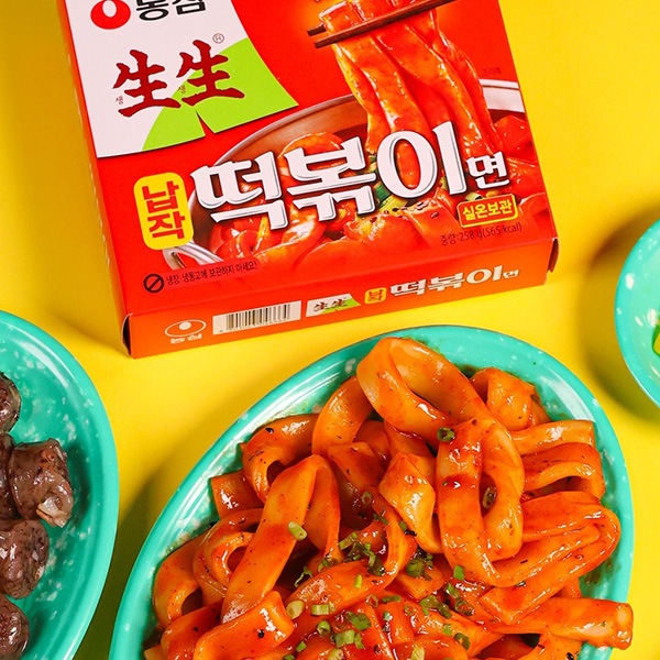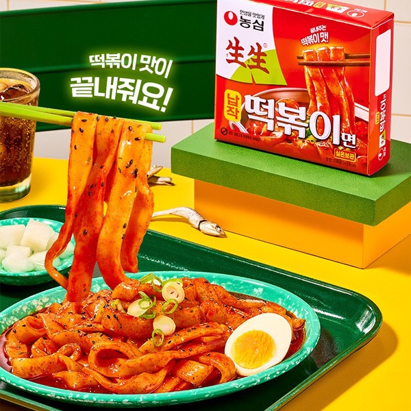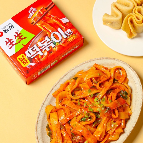 | 特徴 | 新食感の平麺: トッポギのような「もちもち」とした弾力がある平たい生麺(熟めん)を使用しています。 旨辛ソース: コチュジャンをベースに、魚介の旨味や玉ねぎ、にんにくを加えた本格的なトッポギ味のソースが特徴です。 手軽さ: トッポギの美味しさとインスタントラーメンの手軽さを兼ね備えており、屋台の味を家庭で再現できます。 |