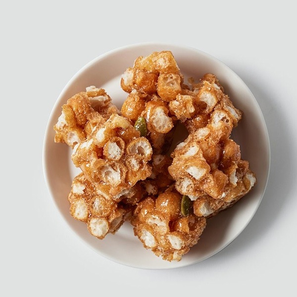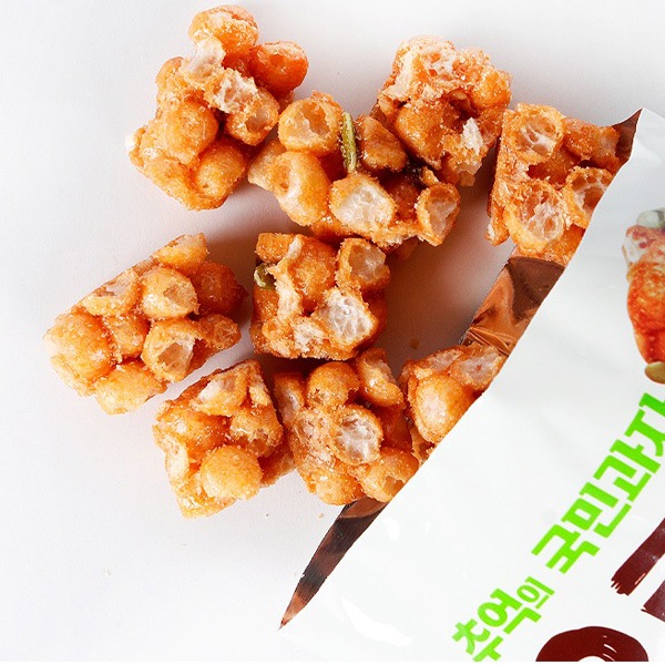 | 特徴 | 韓国思い出の伝統お菓子です。香ばしくてサクサク癖になります。 サクサクとした粒状のあられを水飴で固めた、日本の「雷おこし」に似た懐かしい味わいのお菓子です。 |