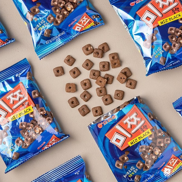 | 特徴 | 韓国の食品メーカーオリオン(ORION)が販売する「MIZ BLACK(ミツブラック)」は、ブラックココア味のクッキー生地にホワイトチョコチップが入った一口サイズのクッキーです。 味: 濃厚なココアクッキーの苦味と、まろやかなホワイトチョコチップの甘さが組み合わされています。 食感: クッキーはザクザクとした軽い食感で、ホワイトチョコチップのパリッとした食感がアクセントになっています。 サイズ: 超ミニサイズで、食べやすく、おやつとして手軽に楽しめます。 |