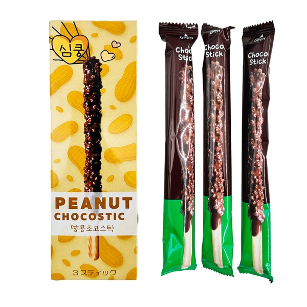 | 特徴 | 韓国で大人気のジャイアントチョコスティック、ペペロみたいなチョコスティック 大きなスティックにピーナッツやクランチがたっぷり付いた食べ応えのあるチョコ菓子です。 韓国語で「シムクン」は「胸キュン」という意味があり、そのボリューム感やパッケージのインパクトが人気を集めています。 ピーナッツチョコスティック 香ばしいピーナッツがたっぷり!ザクザク食感がたまらない |