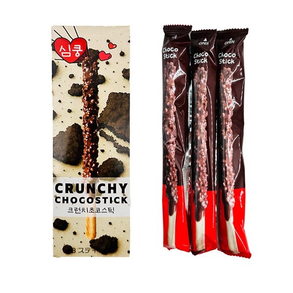 | 特徴 | 韓国で大人気のジャイアントチョコスティック、ペペロみたいなチョコスティック 大きなスティックにピーナッツやクランチがたっぷり付いた食べ応えのあるチョコ菓子です。 韓国語で「シムクン」は「胸キュン」という意味があり、そのボリューム感やパッケージのインパクトが人気を集めています。 ピーナッツチョコスティック 香ばしいピーナッツがたっぷり!ザクザク食感がたまらない |