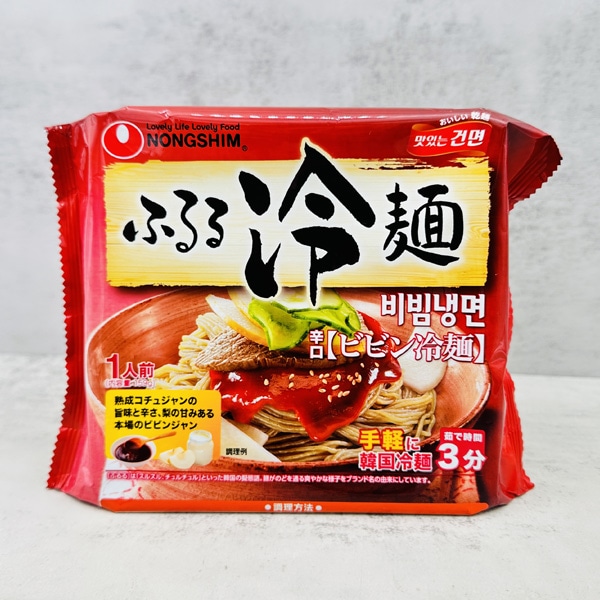 | 主原料 | めん(小麦粉、でん粉、そば粉、植物油脂粉末、昆布粉末)、 タレ(熟成調味ベース(梨、たまねぎ、デキストリン、その他)、梨ピューレ、混合野菜エキス、ポリグリチトールシロップ、唐辛子調味ソース、たまねぎ、砂糖、食酢(ホワイトビネガー、リンゴ酢)、醤油、植物油(米糠油、ごま油)、食塩、果糖ブドウ糖液糖、コチュジャン、ねぎ、炒りごま、生姜、にんにく、梅濃縮液、からしペースト) / シクロデキストリン、香辛料抽出物、酵素、調味料(核酸等)、乳化剤、カゼインナトリウム、(一部に小麦・そば・大豆・りんご・ごま・乳成分を含む) |