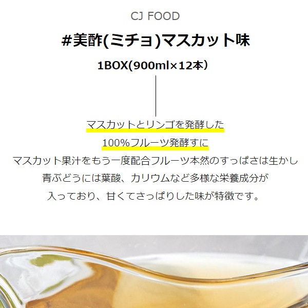 [CJ] 美酢(ミチョ)マスカット味/1BOX(900ml×12本)まとめてお得 健康酢 お酢ドリンク 飲む酢