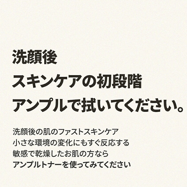 | 使用方法 | 洗顔後、コットンに染みこませ肌に沿って拭き取った後、トントンと肌に馴染ませます。 |
