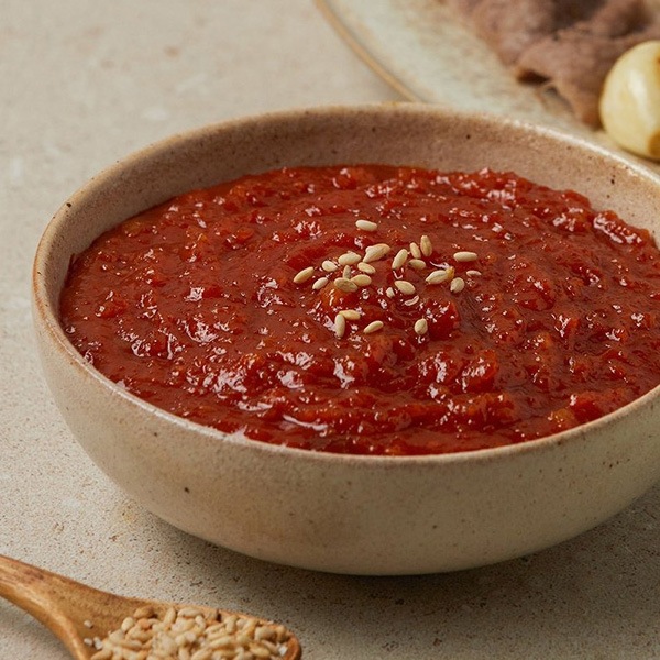 | 主原料 | みそ、水あめ、砂糖、唐辛子ミックス、玉ねぎ、大豆粉末、米粉、にんにく、酵母エキス、にんにくエキス、食塩、ごま、りんごエキス、ごま油、黒こしょう/酒精、調味料(核酸)、(一部に小麦・ごま・大豆・りんごを含む) |