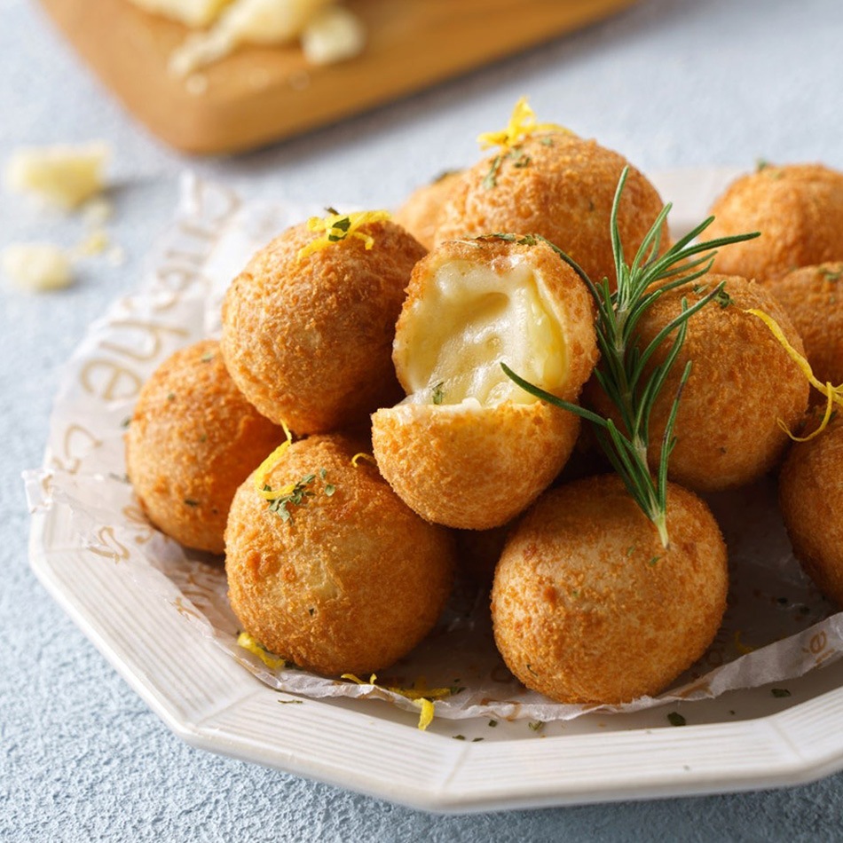 | 調理方法 | あらかじめ175℃に熱した油に凍ったままの本品(チーズボール)を適量入れ、全体がキツネ色になるまで(目安として 4個 約4分30秒)揚げてください。 取扱上の注意: ●一度に多量のチーズボールを油の中にいれると、油の温度が低下し、カラッと揚がりませんのでご注意ください。 また、チーズボールに霜が付いていると油がはねるので取り除いてください。 ● 調理中、調理直後は大変熱くなりますので、やけどに注意してください。 ● 一度解凍したものを再び冷凍させますと品質が変わることがありますのでご注意ください。 ● 本製品は落花生、卵、かに、えび、豚肉、鶏肉、牛肉、くるみ、いかを使用した製品と同じ製造施設で製造しています。 |