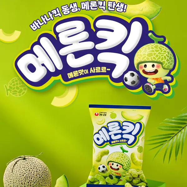 [農心] メロンキック メロンのお菓子 / 60g コーンスナック 韓国お菓子 サクサク ふんわり新感覚 韓国産 マスクメロン味 スナック 農心