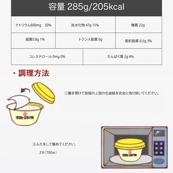 | 美味しく食べていただけるお粥の作り方 | ・沸騰したお湯に7分間暖めてから食べるとおいしいです。 ・電子レンジ:(700W)2分30秒暖めてください。 |