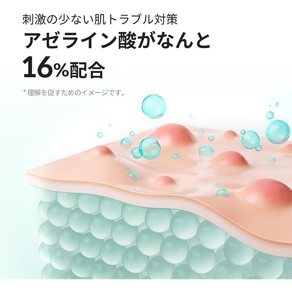 | 特徴 | アゼライン酸16%とパントテン酸*配合で、 肌の油水分バランスを整えて健やかな肌へ導く美容液 過剰な皮脂や乾燥による肌トラブル、繰り返すニキビやザラつきのケアにおすすめの美容液。 16%の高濃度アゼライン酸とB3とB5のWビタミンを配合し、肌の水分・油分バランスを整えて肌を整えます。 キメを整えながら、トラブルを繰り返さない健やかな肌に導きます。 |